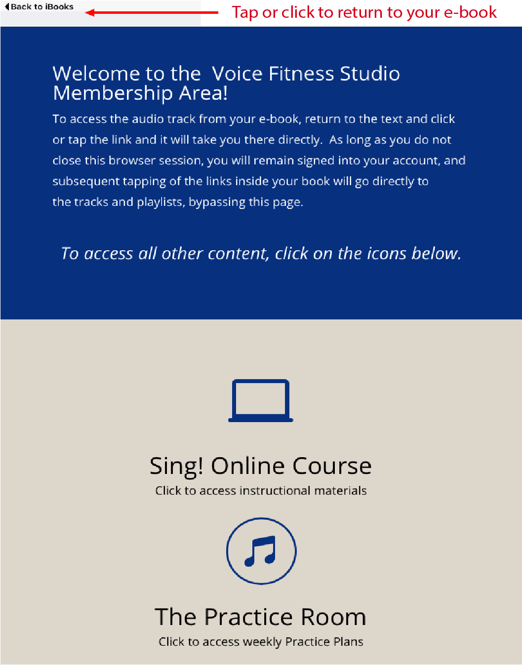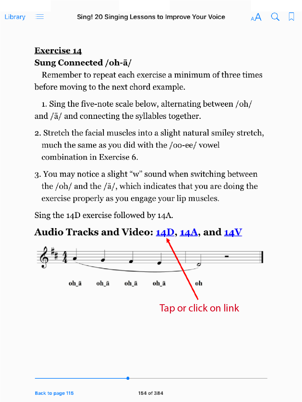 How to access the vocal exercise audio tracks from the downloadable e-book with interactive website access.